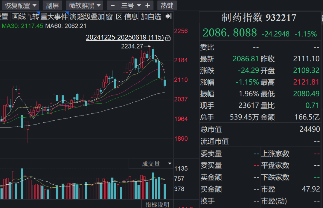 (转自:ETF万亿指数) 周四(6月19日),A股震荡走低,医药板块同步下行,中证制药指数跌逾1%,成份股通化金马跌超9%居首,三生国健跌超3.2%,亿帆医药、长春高新等多股跌逾3%。 ETF方面,国内首只跟踪中证制药指数的药ETF(562050)今日上市交易,收跌1.02%,成交超2788万元,场内溢价频现,或有资金逢跌介入。 公开资料显示,中证制药指数聚焦制药刚需赛道,汇聚国内龙头药企。行业分布尤为纯粹,精准定位“化学药+生物药品+中药”三大类纯制药子行业,不涉及医疗器械、医疗服务,不含CXO、疫苗、血制品。 拉长时间来看,年初以来,A股制药板块在创新药强劲带动下持续走高,截至6月12日年内累涨13.76%。6月13日起,板块开启回调模式,截至今日已连续第5日下跌,阶段高位风险持续释放,当前或打开配置窗口。 ![]() 消息面,创新药再迎政策利好。近日,国家药监局组织起草了《关于优化创新药临床试验审评审批有关事项的公告(征求意见稿)》,其中提到,为进一步支持以临床价值为导向的创新药研发,对符合要求的创新药临床试验申请在30个工作日内完成审评审批。 招商证券研报指出,随着保健意识的提升及国内人口老龄化趋势的发展,药品作为人们生活中的刚性需求,其市场需求量日益增长。从供给端来看,原研药专利集中到期,创新药频获出海订单,中药受政策大力扶持,各细分领域药企均迎来发展机遇。时逢相关标的位于历史的相对价格低位,药品制造业显示出一定的投资机会。 龙头药企,一指尽揽!国内首只药ETF(562050)已上市交易,一站配齐“化学药 + 生物药 + 中药”三大纯制药领域龙头,既有创新药驱动高成长,又有中药降低指数波动,能涨抗跌,买“药”优选。 专业投资顾问都在用的ETF筛选器,就在Go-Goal App!点击下方【阅读原文】,立即免费体验! ]article_adlist-->
